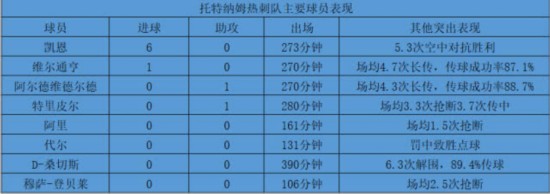 热刺主要球员表现,合计贡献7球2助