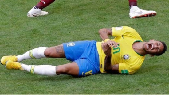 在八分之一决赛,这一时间数据提高了很多。被淘汰的墨西哥队成员,对内马尔遭受犯规后的夸张表现很生气和无奈,中场球员拉云在比赛中不慎踩到了内马尔的脚尖,后来根据VAR的帮助,主裁判并没有判罚任何黄牌或者红牌,但是拉云表示如果内马尔这样踢球,他还不如回家。而在本场比赛后,根据数据统计,内马尔在草地上躺了五分半种,大大超过了他之前三场比赛躺在地上的时间。