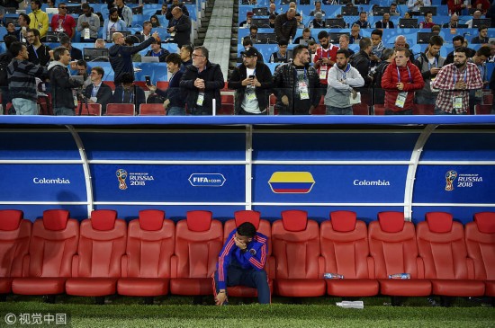 其实不想走,其实很想留。世界杯就是如此残酷,输了,四年的努力就此终结。看看这些英雄的离去,看到哪张你哭了? J罗由于受伤无法上场,孤独地坐在空荡荡的场边。