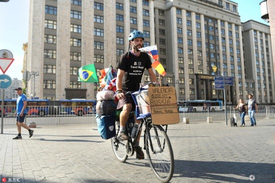 腾讯体育讯 小组赛刚刚结束,来自西班牙圣地亚哥的球迷骑行6000多公里抵达俄罗斯,他正好可以赶上看西班牙的淘汰赛