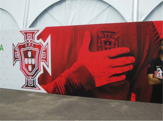 阿根廷驻地帐篷新闻中心 不过他们所在的布龙尼奇就靠近莫斯科河,这里也是俄罗斯赛艇队的训练基地。沿着美丽的河岸就到了阿根廷的训练基地。而他们的媒体中心也颇具南美特色,完全不是选择一个室内的空间,而是帐篷下搭建了临时的新闻中心,记者们一边工作一边吃土。不过阿根廷队每天还是会准备一些餐食,还变换花样,一般是一个沙拉加一个主食,种类有汉堡、意面、饼等。球队还提供了无线网络和电视,阿根廷记者背着马黛茶在这里吃着土晒着太阳看球,也是别有一番风味。 葡萄牙驻地:林间度假村别有情趣 葡萄牙驻地位于小镇克拉沃托,驻地本来是俄罗斯当地土星俱乐部的训练基地,驻地位于树林的掩映中,只有一条柏油路通往外界,葡萄牙之所以选在这样一个地方作为驻地,可能就是想图一个幽静安逸吧! 走进驻地,通过一段用细碎石子铺设的不算是道路的道路,就来到了临时搭建而成的新闻中心,新闻中心之外是葡萄牙队所有23人肖像照组成的大横幅,每次来到驻地,这组照片横幅都会成为各国记者出镜和合影的最佳去处。