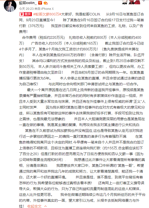 拖欠蛇哥韦神千万工资斗鱼要凉
