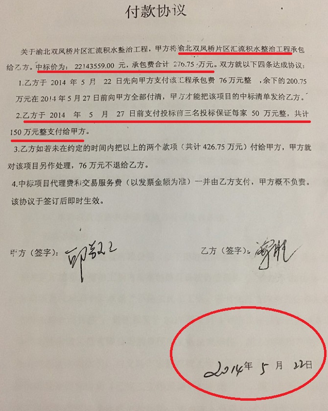 义乌市宏胜市政公司被曝卖标 高利坑惨承包人 独立撰稿人 李海波 我国法律法规对转包行为不仅严令禁止,而且规定了比较严厉的处罚措施。近日法讯君接到举报反映义乌市宏胜市政工程有限公司代表在没有获得中标通知书的情况下和个人签订协议收取工程造价14%的点子费后卖标。 义乌市宏胜市政工程有限公司于2001年03月20日在义乌市工商行政管理局登记成立的私营有限责任公司。法定代表人龚红星,公司经营范围包括一般经营项目:市政公用工程总承包,公路工程施工总承包等。 百度上的义乌市宏胜市政工程有限公司风险信息 在启信宝上显示其风险信息是458、行政处罚4、环保处罚1。而行政处罚的4件中有3件都没有履行金额! 据查,义乌市宏胜市政工程有限公司2017年8月18日更名为宏胜建设公司,法人依然是龚红星,注册地址: 浙江省义乌市稠江街道杨一村。 花了4百多万元 义乌宏胜市政公司卖标给个人 近日重庆市开州区的曾胜向法讯君举报义乌市宏胜市政工程有限公司卖标后将其坑惨的情况。2014年5月,多次合作的朋友邱敬元(重庆某公司董事长)给曾胜电话说有个优质工程中标了可以给他做。22日,宏胜市政代表人邱敬元和曾胜签订付款协议。约定将中标价为2214.3599万元的“渝北双汇桥片区汇流积水整治工程”承包给曾胜,曾胜为此花了400多万元获得这个造价2千多万元的工程,约定的买标按14个点子算,也就是276万多元。 6月10日,义乌宏胜市政公司获得中标通知书。 6月20日,发包人重庆市城市建设工程有限公司与义乌市宏胜市政工程有限公司签订《建设工程施工合同》。“渝北双汇桥片区汇流积水整治工程”签约合同价为2214.3559万元(含安全文明施工费19.37万元)。 2014年7月4日,曾胜向义乌市宏胜市政工程有限公司写下承诺书,承诺按照合同约定完成该工程的全部内容,产生的一切纠纷由曾胜承担并协调解决,与义乌市宏胜市政工程有限公司无关。 写了承诺书之后,义乌市宏胜公司和曾胜签订《管理输出施工承包协议书》,宏胜公司将“渝北双汇桥片区汇流积水整治工程”整体承包给曾胜,曾胜向宏胜公司缴纳1.5%的管理费及承担税费,没有其他费用。只是约定超过合同工期才支付每月4千元的建造师费用给项目经理。 合同约定公司将收到的工程款支付到曾胜在开县建行的个人卡号。 工程竣工合格而承包人损失惨重 义乌宏胜公司高利扣除承包人款项 工程于2015年3月25日开工。但义乌宏胜公司没有按照合同收费,除了收取管理费34万多元外,每月还给项目经理7千元共计7万余元。 除了这些,如果宏胜为曾胜发生了垫付款,还要收取月利三分的利息。这些都是在发包方汇到宏胜公司的账户里直接扣除的,曾胜没有任何办法。 2015年3月16日,义乌市宏胜市政公司与重庆力山物资有限公司签订《钢材购销合同协议书》,约定工程所用钢材由力山物资独家供应。2016年1月20日,力山物资公司将宏胜市政公司起诉,要求支付材料款,为此冻结了义乌宏胜市政公司的2百万元账户资金。对此,义乌宏胜市政公司也对资金按照月息三分计息。之后曾胜筹款缴纳了该笔材料款。 “渝北双汇桥片区汇流积水整治工程”于2016年10月10日竣工验收合格,所有手续都是曾胜和合伙人出面协调处理完成。 在2019年7月8日,最后一笔278.8992万元的工程款在曾胜方努力下汇到了义乌宏胜市政公司账户,但公司就不再将款项支付给曾胜了。 四处借款完成该工程的曾胜成立穷光蛋,他多次哀求宏胜公司将工程款给他好解决一下困境,但宏胜公司以欠公司利息为由不予理睬。 2019年8月,万般无奈之下的曾胜将义乌市宏胜市政工程公司起诉,要求支付其工程款。目前该案已经二次开庭,还没有判决。 这表显示宏胜公司为曾胜借款(垫付)了160多万元,收取了118万多元的利息(按天计算),总计278.96万元,和最后一笔款到宏胜公司的金额基本一致。而值得注意的是在2019年5月9日曾胜借款4千元,仅60天的利息就收取240元!更令人气愤的是法院冻结的2百万元宏胜公司收取了66万元的利息后,从2017年1月23日再次计息,到2019年7月8日共896天宏胜公司又计算了59万多元的利息! 也就是说,曾胜的这个工程他不赚分文,反而还要给买标等费用4百万元左右。而为了这个工程,他和合伙人借债无数,几年下来的利息也是天文数字,他们已经走投无路。 正因为如此,他们才愤而举报,法讯君将对此进行关注。 说法:卖标(转包)的相关法律规定 《建筑法》第六十七条 承包单位将承包的工程转包的,或者违反本法规定进行分包的,责令改正,没收违法所得,并处罚款,可以责令停业整顿,降低资质等级;情节严重的,吊销资质证书。承包单位有前款规定的违法行为的,对因转包工程或者违法分包的工程不符合规定的质量标准造成的损失,与接受转包或者分包的单位承担连带赔偿责任。 第六十八条 在工程发包与承包中索贿、受贿、行贿,构成犯罪的,依法追究刑事责任;不构成犯罪的,分别处以罚款,没收贿赂的财物,对直接负责的主管人员和其他直接责任人员给予处分。 国务院颁布施行的《建设工程质量管理条例》第25条 施工单位应当依法取得相应等级的资质证书,并在其资质等级许可的范围内承揽工程。禁止施工单位超越本单位资质等级许可的业务范围或者以其他施工单位的名义承揽工程。禁止施工单位允许其他单位或者个人以本单位