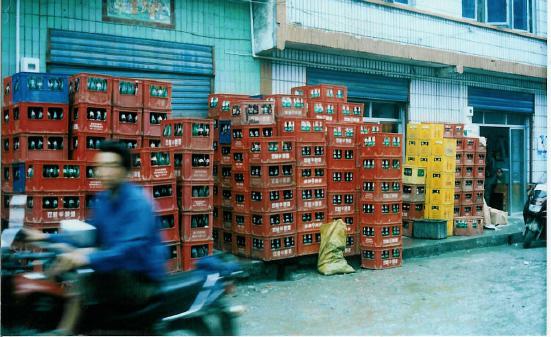 图为经销商何某门前囤积的大量“双桂”啤酒箱,在喝它时,你可曾想到过隐患?