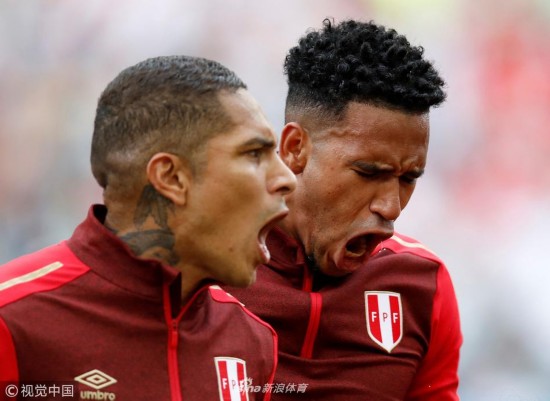 2018年6月26日,俄罗斯索契,2018俄罗斯世界杯小组赛C组,澳大利亚0-2秘鲁。 帕奥洛·格雷罗与佩德罗·加莱塞赛前加油Soccer Football - World Cup - Group C - Australia vs Peru - Fisht Stadium, Sochi, Russia - June 26, 2018 Peru\'s Paolo Guerrero and Pedro Gallese before the match Carlos Garcia Rawlins |