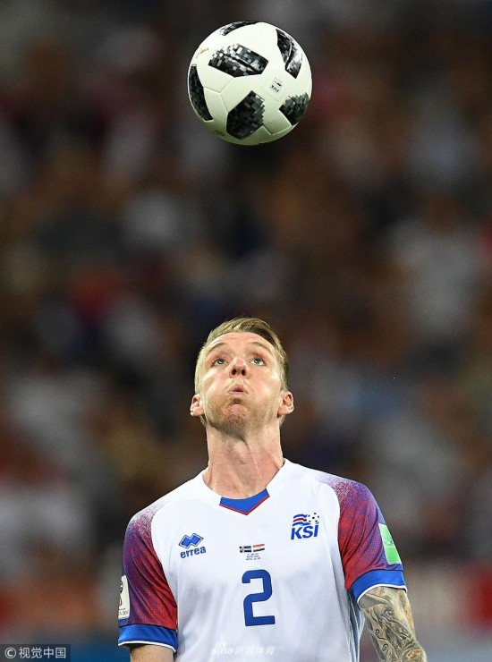 2018年6月26日,俄罗斯,2018俄罗斯世界杯小组赛D组,冰岛Vs克罗地亚。 贝基尔·赛瓦尔森 5560938 26.06.2018 Iceland\'s Birkir Saevarsson heads a ball during the World Cup Group D soccer match between Iceland and Croatia at the Rostov Arena, in Rostov-on-Don, Russia, June 26, 2018. Alexey Malgavko / Sputnik