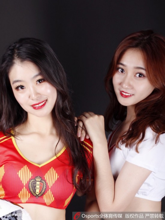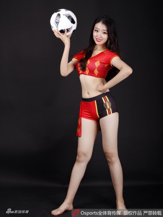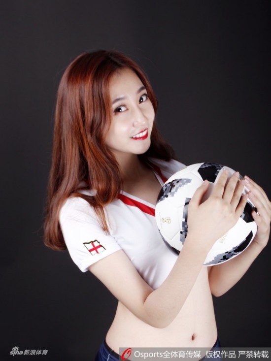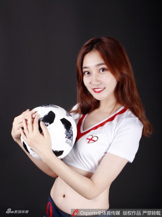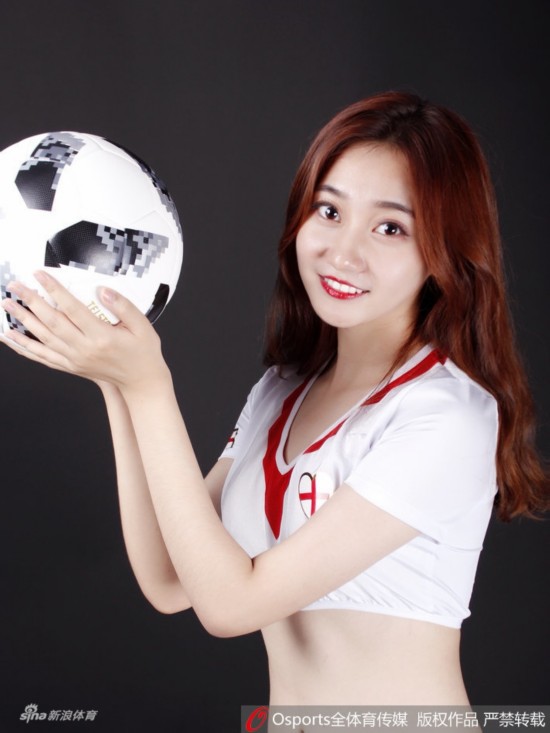 2018年6月28日,2018年俄罗斯世界杯G组:英格兰vs比利时,Lucky team中国体育宝贝拍摄性感写真为比赛打call。
