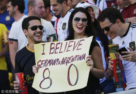 2014年世界杯决赛德国球迷称要赢阿根廷8-0
