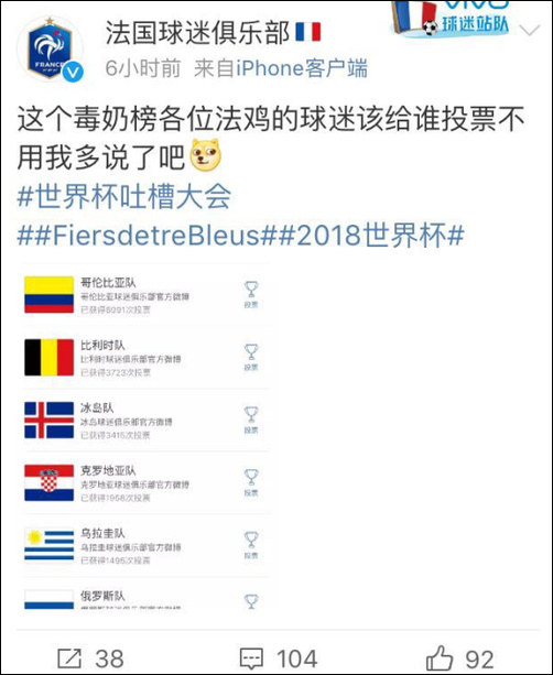法国队球迷不仅高瞻远瞩顺便奶了比利时,还能分神看戏:让他们互相把自己奶穿!我们坐收渔翁之利!