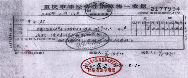 “2006年拆迁工程部多收被安置户房款是78429.7元,还是150521.61元?何时退还?” “我只领了一笔钱,1997年3月21日56352.11元荣昌县农村合作基金会那张凭证;3.2万多元凭证,我不认可。” 梁太英说:“当时我把5万多块钱抱回来,借给朋友2万元,剩下3万多元存入基金会,怎么变成拆迁工程部支付我的拆迁补偿款呢?” 梁太英到当年存款的荣昌县农村合作基金会(现农村商业银行)调取票据,该行汤经理查阅后回复说,1997年的凭证已经销毁。 “根据《拆迁安置补偿协议书》数据计算,我家合计收入199235.91元-总计应支出159735.07元=拆迁工程部应补给我39500.84元; 我在拆迁工程部领款5万多块钱(具体数据记不清楚)-拆迁工程部还应补给我39500.84元=我应补拆迁工程部10499.16元; 2006年办房产证时我交门面住房款88928.86元(门面38000元、住房50928.86元)-我应补拆迁工程部10499.16元=拆迁工程部多收我78429.7元。” 因拆迁中心无法调取支付我115000元领款领据,就说我交拆迁工程部安置房款110663.91元,还是重庆市非经营性结算统一收据。该收据既没有收款单位财务专用章,也没有财务科档案室查询专用章,又没有交款人李北超、梁太英本人签名。 梁太英说:“按照田科长说的计算,我家拆迁收入合计199235.91元-总计应支出159735.07元=拆迁工程部还应补我39500.84元; 我从拆迁工程部已领款56352.11元+32219.8元=88572元; 我从拆迁工程部共已领款88572-拆迁工程部应补我39500.84元=我还应补拆迁工程部49071.16元; 我交拆迁工程部110663.91元+2006年补门面住房款88928.86元=19959.77元-我应补拆迁工程部49071.16元=拆迁工程部还应补我150521.61元。” 2月27日,梁太英在拆迁中心拿出《拆迁安置补偿协议书》,让田科长算一下账。田科长用手遮住该协议书下方被拆迁单位、个人安置房款支出计算表说:“下面这些不归我管。” 征地拆迁中心。梁太英 供图 “归哪个管?”田科长不说话。 2006年拆迁工程部多收被安置户房款是78429.7元,还是150521.61元,何时退还?