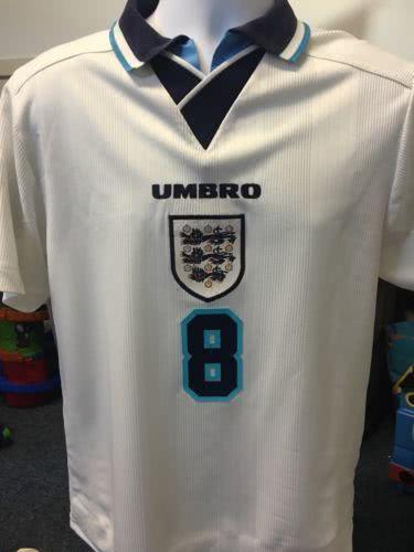 英格兰1990版球衣 至于在英格兰本土举办的1996欧洲杯上,英格兰队所穿的那套经典白色球衣现在则价值150镑,看到这件球衣,相信不少球迷都会想起加斯科因对苏格兰时攻进的那粒精彩绝伦的进球。